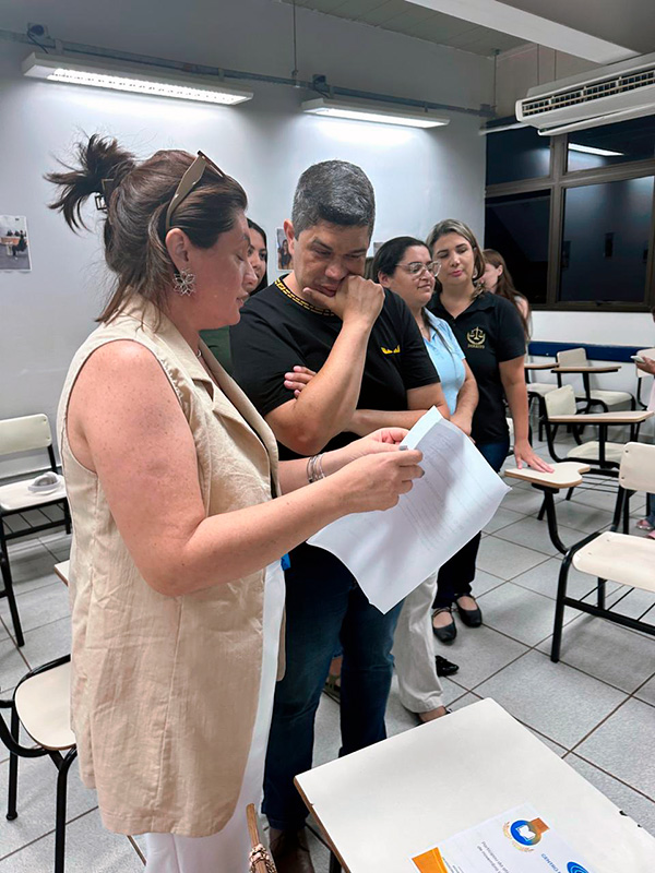 A atividade foi conduzida pela Professora Ariana Storer, que orientou os estudantes passo a passo, aplicando técnicas reais utilizadas no sistema de Justiça brasileiro, fortalecendo a compreensão dos princípios de diálogo, construção colaborativa, escuta ativa, imparcialidade e comunicação estratégica não-violenta.