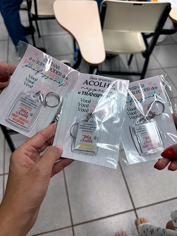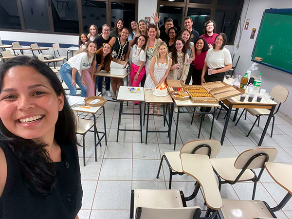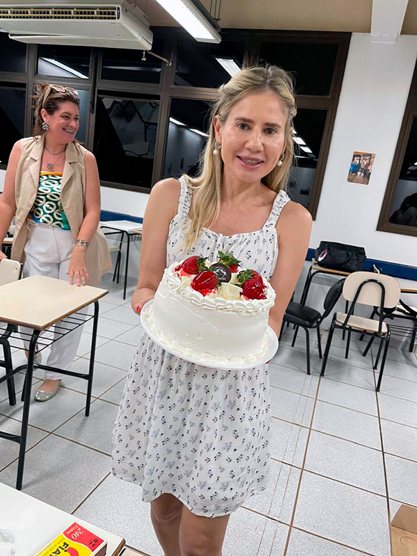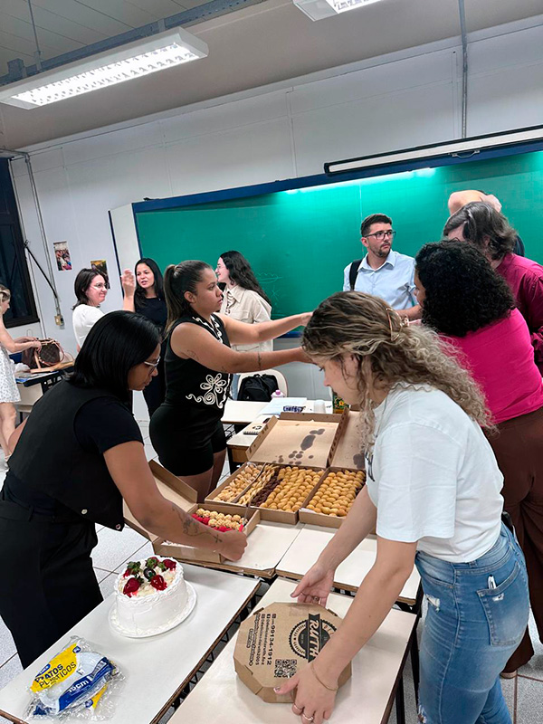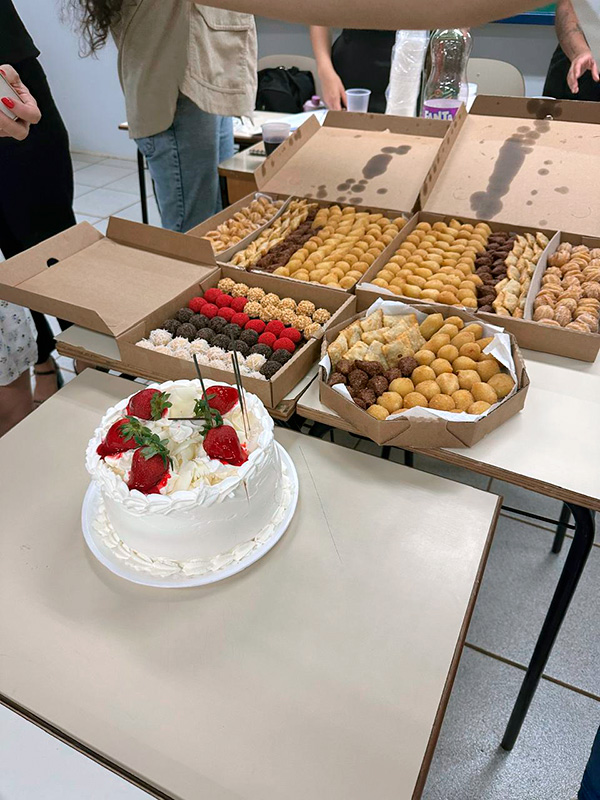 Ao final da atividade, os alunos promoveram um momento de confraternização, celebrando o aniversário da professora Ariana Storer. Na ocasião, os professores também foram homenageados com lembranças preparadas pelos estudantes, marcando o encerramento do projeto em um clima de integração, reconhecimento e celebração.