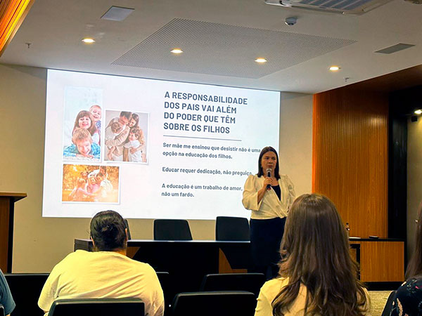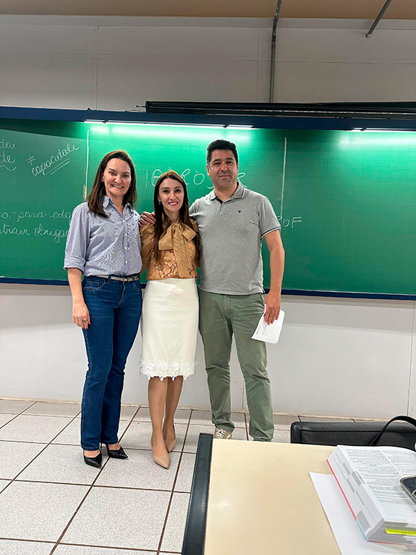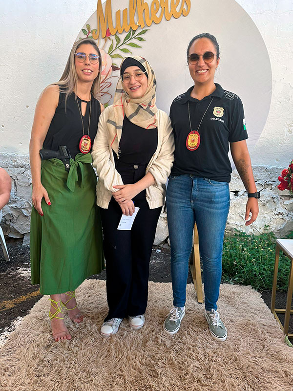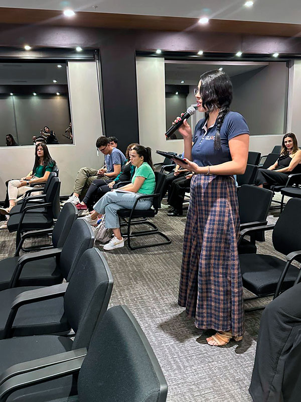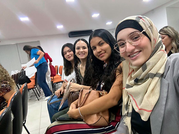 Estiveram presentes a coordenadora do Curso de Direito, professora Aicha Eroud, e a professora Andreza Dolatto, que acompanharam as alunas durante a programação. Dinâmicas e momentos de interação também integraram o encontro, tornando a experiência ainda mais significativa.