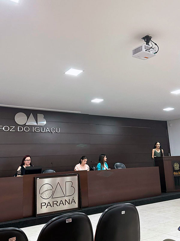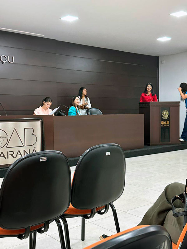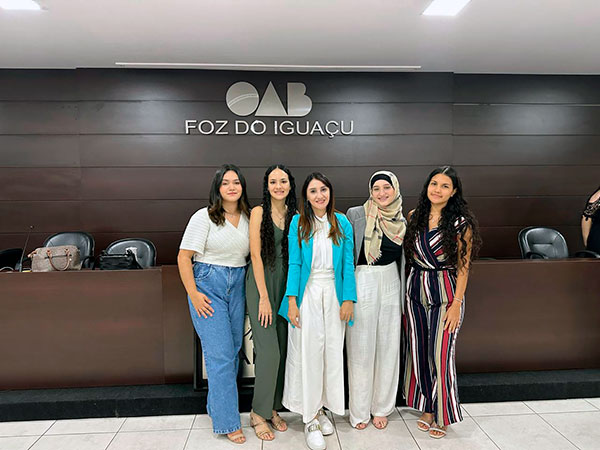 No dia 05 de setembro de 2024, as alunas do curso de Direito, juntamente com a Professora Aicha Eroud, se reuniram com a Comissão da Mulher Advogada da OAB/Foz do Iguaçu, para falar sobre estudos atinentes à violência doméstica praticada contra as mulheres. Os estudos fazem parte do Laboratório de Peças e Teses do curso de Direito do CESUFOZ.