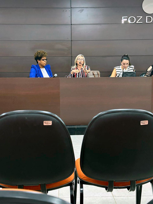 A reunião foi conduzida pela Juíza Dra. Luciana Assad Luppi Ballalai, coordenadora do CEJUSC. Também estiveram presentes o gestor do CEJUSC, Alexandre Brotto Rangel da Silva e outras instituições de ensino, sendo uma delas a UNILA.