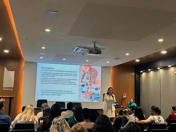 No dia 10 de maio de 2025, ocorreu o I Congresso Feminino sobre Autismo, evento que reuniu especialistas, familiares e comunidade acadêmica para discutir os desafios, conquistas e vivências de mulheres autistas. A coordenadora do curso de Direito, professora Aicha Eroud, participou como ouvinte das atividades, acompanhada por alunas do 1º Período de Psicologia da instituição, as acadêmicas Claudete Ferrari Zamboni e Gislaine Oliveira.