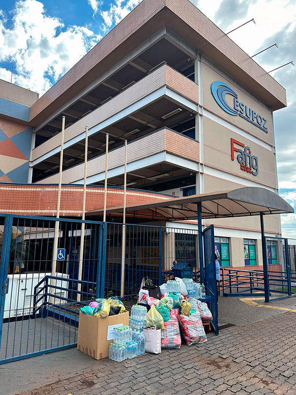 Os acadêmicos e professores de vários cursos do CESUFOZ se uniram para arrecadar mantimentos e demais itens básicos que foram destinados à população atingida pelas enchentes no Rio Grande do Sul. O 5º Colégio da Polícia Militar de Foz do Iguaçu buscou as arrecadações que foram levadas ao Corpo de Bombeiros. O CESUFOZ agradece e parabeniza a todos pelo envolvimento.