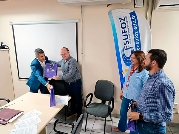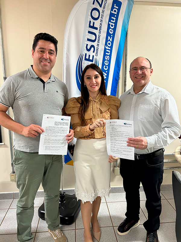 A parceria foi formalizada pelo Presidente do IBEROJUR, Prof. Dr. Fabio Veiga, o Diretor-Geral do Cesufoz, Prof. Everson Marquetti e a Coordenadora do Curso de Direito e do NPJ do Cesufoz, Profa. Aicha Eroud.
