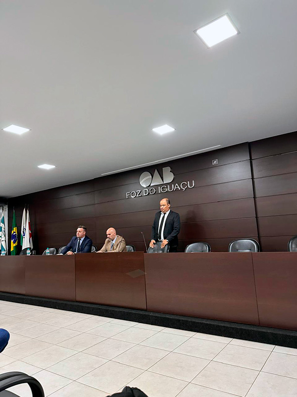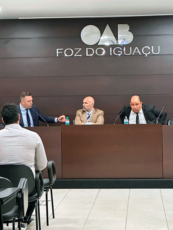No dia 11 de abril de 2025, os alunos do curso de Direito do CESUFOZ participaram da reunião da Comissão de Estudos do Tribunal do Júri, com debate sobre o tema "atuação do advogado no inquérito policial com ênfase nos crimes dolosos contra a vida", a convite do Presidente da Comissão, o Dr. José Guilherme Boaroli. A mesa foi composta pelo Dr. Boaroli, Dr. Rogério Botelho, Presidente da OAB/FI e Dr. Wilson Neres, Conselheiro da OAB/FI, todos advogados criminalistas.