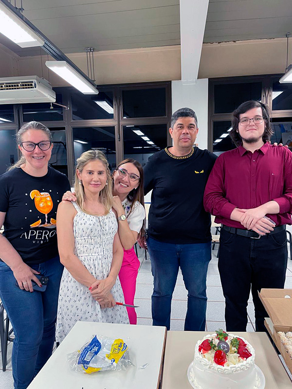 Ao final da atividade, os alunos promoveram um momento de confraternização, celebrando o aniversário da professora Ariana Storer. Na ocasião, os professores também foram homenageados com lembranças preparadas pelos estudantes, marcando o encerramento do projeto em um clima de integração, reconhecimento e celebração.